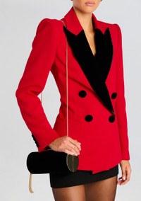 Elevate any look with the Gracelyn Clutch. Crafted in a sleek cylindrical shape, this statement piece features a delicate chain strap that can be worn crossbody or carried as a clutch. The perfect accessory for any occasion, it effortlessly combines style and versatility. Shown here in Velvet Black. - Shell: 90% Velvet, 10% Metal, Lining: 100% Polyester - Made in China - Style No. HB24-9765