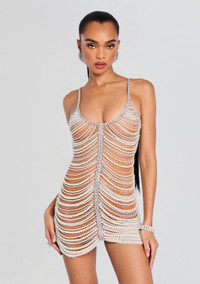 - Crystal and Faux Pearl Embellishments - 100% Nylon - Made in India - Model is 5'10 wearing size S - Style No. - R25-11088