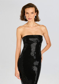 Indulge in the luxurious elegance of the Karrah Embellished Knit Dress. This strapless stunner features intricate hotfix embellishments that add a touch of sophistication to any night out. Made from high-quality knit fabric, it's the perfect choice for a glamorous and stylish look. - 54.5% Nylon, 20% PPT, 16% Anti Pilling Acrylic, 9.5% Ultrafine Wool - Model is 5'10 wearing size S - Made In China - Style No. - HL25-8046