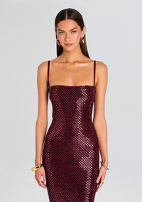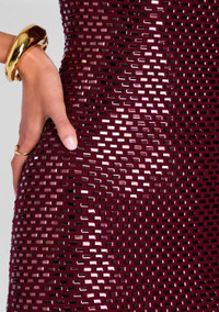 Unleash your inner diva in our Kyree Knit Dress. This exceptional creation boasts embellishments throughout, offering a perfect blend of style and comfort. With a flattering bodycon silhouette and convenient back zip closure, this dress is designed to make you feel and look absolutely glamorous. Shown here in Port. - 9.5% Wool, 16% Acrylic, 20% PPT, 54.5% Nylon - Made in China - Model is 5'10" wearing size XS - Style No. - HL24-8046