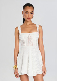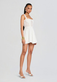About Charo Ruiz Ibiza Established in 1989, Charo Ruiz is a resort wear brand renowned for its luxe Spanish designs. Characterized by natural fabrics, embroidery, and delicate lace, each piece is inspired by the culture and purity of Ibiza. With an emphasis on local craftsmanship and traditional design, Charo Ruiz aims to create feminine silhouettes that live as long as the memories of the idyllic and eternal island itself. The family owned business continues to push boundaries each season, instilling personality, freedom, and uniqueness into each piece designed. - 50% Cotton, 30% Nylon, 17% Polyester, 3% Spandex - Made in Portugal - Model is 5'10 wearing size S - Style No. - 255601
