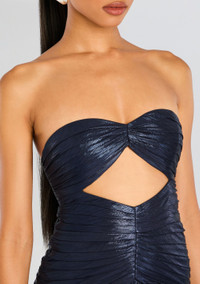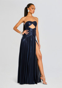 Step into the spotlight with our Mallory Dress, a captivating ensemble crafted to exude grace and sophistication. Featuring a seductive slit and subtle cutout detail, this gown boasts a flattering silhouette that effortlessly enhances your natural beauty, making it the epitome of timeless glamour. Shown here in Ink. - 95% Polyester, 5% Spandex - Made in China - Model is 5'10" wearing size S - Style No. - SS24-8310