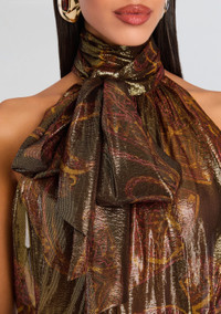 - 78% Silk, 22% Metallic - Made in China - Model is 5'10 wearing size S - Style No. - R-FW25-11885-11