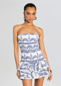 The Megan mini dress, made from broderie anglaise cotton blend, is equal parts effortless and versatile. This strapless silhouette doubles as a smocked skirt, featuring tiered eyelet ruffles and a romantic lace trim. Shown here in Blue Klein. About Charo Ruiz Ibiza Established in 1989, Charo Ruiz is a resort wear brand renowned for its luxe Spanish designs. Characterized by natural fabrics, embroidery, and delicate lace, each piece is inspired by the culture and purity of Ibiza. With an emphasis on local craftsmanship and traditional design, Charo Ruiz aims to create feminine silhouettes that live as long as the memories of the idyllic and eternal island itself. The family owned business continues to push boundaries each season, instilling personality, freedom, and uniqueness into each piece designed. - 70% Cotton, 30% Polyester - Made in Portugal - Model is 5'10 wearing size S - Style No. - 243611