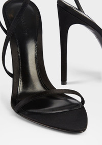 Experience the chic sophistication of our Naomi Sandals. Whether you're attending a special event or simply looking to enhance your daily attire, these heels are designed for those who appreciate timeless style with a modern twist. Shown here in Black. - Satin upper and leather lining - 110mm heel height - Made in Italy - Style No. SH24-8700 - *Please note that our footwear is Italian sizing and runs small, we recommend sizing up by one size