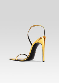 Experience the chic sophistication of our Naomi Sandals. Whether you're attending a special event or simply looking to enhance your daily attire, these heels are designed for those who appreciate timeless style with a modern twist. Shown here in Gold. - Leather upper and leather lining - 110mm heel height - Made in Italy - Style No. SH24-8700 - *Please note that our footwear is Italian sizing and runs small, we recommend sizing up by one size