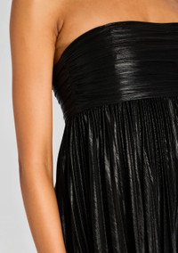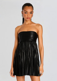Transport yourself to a world of sophistication and glamour with the Nellia Dress. This mini strapless lame dress is the epitome of luxury, featuring a stunning metallic sheen that will catch the light and the attention of everyone around you. - 95% Polyester, 5% Spandex - Made in China - Model is 5'10" wearing size S - Style No. - FW24-9675