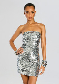 Step into the spotlight with our Nolia Dress – a dazzling ensemble that defines glamour and allure. Perfect for making a stunning entrance, this dress offers a chic and trendy look, radiating confidence and charm. Shown here in Silver. - HANDMADE - All over paillette sequin layering - 95% Polyester, 5% Lycra - Made in India - Model is 5'10" wearing size XS - Style No. SS24-9091