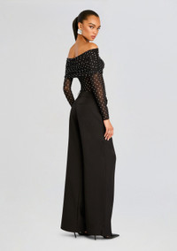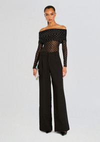 Introducing the Oriana Mesh Top. This elegant piece boasts delicate sheer detailing, perfect for showcasing your femininity. With its off-the-shoulder design and dazzling embellishments, it exudes sophistication and luxury. Elevate your wardrobe with this exclusive addition. - 90% Polyester, 10% Spandex - Made in China - Model is 5'10" wearing size S - Style No. - HL25-10743
