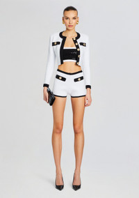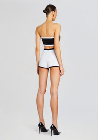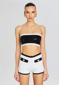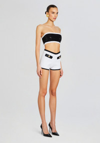 Make a bold statement with our Paighton Top, crafted to perfection with eye-catching details that elevate your look. Designed to turn heads, this top effortlessly combines style and comfort. Shown here in Black/White. - 63% Viscose, 34% Nylon, 3% Spandex - Made in China - Model is 5'11" wearing size S - Style No. SS24-9061