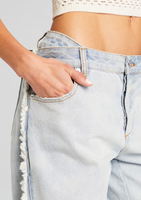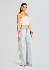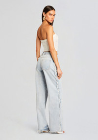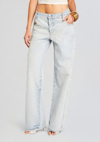 Slip into SER.O.YA's Roma Jean. This low rise, light wash pant features distressing at the sides and a baggy silhouette. Shown here in Skylight. ABOUT SER.O.YA Established in 2020, SER.O.YA is a New York-based ready-to-wear label founded with the intention to upgrade and refine your wardrobe. With a focus on crafting effortlessly cool and timelessly luxurious designs—SER.O.YA creates minimalist collections powered by maximum style. Everyday essentials in the form of breathable knits, vintage inspired denim, and ultra-luxe fabrications are interchangeably worn for easy dressing that never compromises. With versatility at its core, the brand’s simple yet significant aesthetic comes through in classic silhouettes that are anything but conventional. - 100% Cotton - Made in China - Model is 5'10" and wearing size 26 - Style No. 4171-14