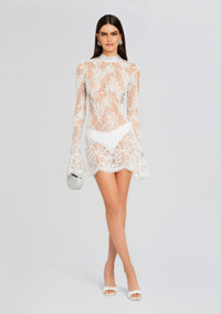 Turn heads with our Rosie Dress—an enchanting blend of modern sophistication and elegance. This dress boasts intricate embellishments adorning the neckline and sleeve cuffs, exuding opulence and charm for any occasion. The sheer fabric offers a touch of allure while allowing the exquisite embellishments to shimmer and captivate. The zip-back closure ensures a seamless and flattering fit, while the scalloped embellished hem adds a whimsical and romantic finish to this ethereal gown. Shown here in White. - 100% Nylon - Made in India - Model is 5'10" wearing size S - Style No. - R24-8262