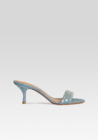 Step into summer style with the Serena Sandal. These chic sandals feature a comfortable strap design and are adorned with sparkling crystals for a touch of glamour. Crafted from premium denim, they’re perfect for both casual and dressed-up occasions. Shown here in Tel Aviv Sand. - 100% Cotton - Made in Italy - 75mm heel height - Style No. SH24-9602