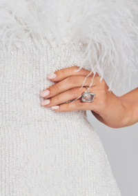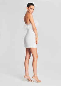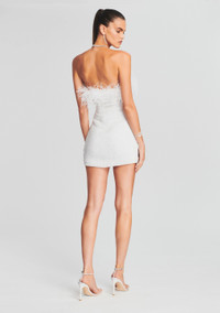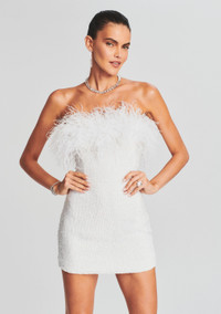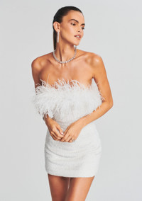 - HANDMADE - Self: 100% Viscose, Trim: 100% Ostrich Feather - Made in India - Model size XS is 5'10" wearing size XS - Model size L is 5'11" wearing size L - Style No. - HL23-6347