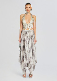 Indulge in the exotic allure with our Traci Skirt, a captivating addition to your collection that promises to elevate any outfit. This skirt boasts a mesmerizing snake skin print that commands attention with every step. The asymmetrical flow hem adds a touch of whimsical charm, creating a silhouette that effortlessly flatters and flows as you move. Whether you're dressing it up with heels for a night out or keeping it casual with sandals for a daytime adventure, this skirt is sure to become your go-to statement piece. Shown here in Vintage Snake. - 100% Polyester - Made in China - Model is 5'11" wearing size S - Style No. SS24-8811
