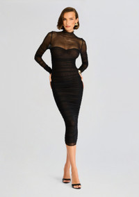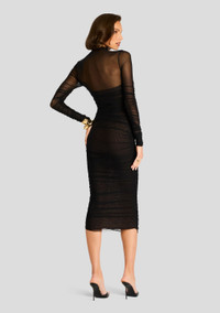 TRINA MESH RUCHED MIDI DRESS