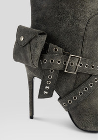 Elevate your style with the Yasmine Boot. Its sleek knee-high design and stiletto heel add a touch of sophistication, while the criss cross straps and tactical pockets provide both functionality and fashion. Perfect for a night out, this boot is a must-have for any wardrobe. - Leather upper and leather lining - 110mm heel height - 16" shaft - Made in Italy - Style No. SH24-8699 - *Please note that our footwear is Italian sizing and runs small, we recommend sizing up by one size