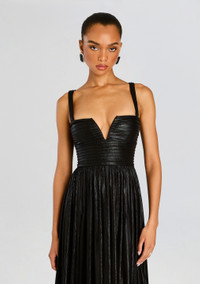 Elevate your wardrobe with our Yvonne Dress. Crafted from exquisite lame fabric, this gown features a seductive v cut neckline and removable straps for customizable styling. The subtle slit adds a touch of allure to this luxurious piece. Embody elegance and sophistication with the Yvonne Dress. - 95% Polyester, 5% Spandex - Made in China - Model is 5'10 wearing size S - Style No. HL25-10473