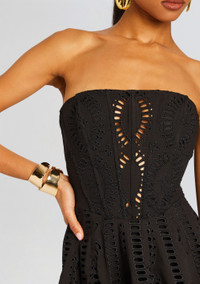 Experience vacation elegance with Charo Ruiz’s Zannick Dress- featuring embellished cutouts and a hem, this is a quintessential piece for beach-to-bar versatility or creating timeless bride and honeymoon looks that capture attention and admiration. This stunning dress transcends from casual beach outings to vibrant bar scenes or chic day-to-night elegance, making it an impeccable choice for brides or honeymoon escapades. Shown here in Black Samoa. 70% Cotton, 30% Polyester Made in Portugal Model is 5'10" wearing size S Style No. c About Charo Ruiz Ibiza Established in 1989, Charo Ruiz is a resort wear brand renowned for its luxe Spanish designs. Characterized by natural fabrics, embroidery, and delicate lace, each piece is inspired by the culture and purity of Ibiza. With an emphasis on local craftsmanship and traditional design, Charo Ruiz aims to create feminine silhouettes that live as long as the memories of the idyllic and eternal island itself. The family owned business continues to push boundaries each season, instilling personality, freedom, and uniqueness into each piece designed.
