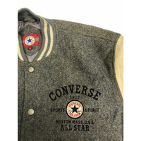 Vintage 90s Converse Biglogo Varsity Leather Jacket Gray