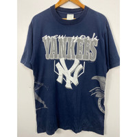 Vintage - 90s New York Yankees Fullprint T Shirt Rare Design
