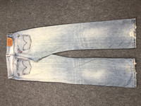 HELLO EVERYONE!! PLEASE READ ALL DETAILS AND REFER PICTURES FIRST MEASUREMENT Waist :34 inches Length : inseem 34.5 inches Outseem 45 inches Leg Open : 17 Condition : Good,see pictures PLEASE DO NOT HESITATE TO MAKE AN OFFER PLEASE LEAVE ME CONTACT NUMBER, AS THE SHIPPING COMPANY ALWAYS NEED THE PHONE NUMBER TO HELP DELIVERING THIS ITEM WILL BE SHIP ALONG WITH TRACKING NUMBER AFTER RECEIVED A COMPLETED PAYMENT. N0 RETURNS / REFUNDS SO IF YOU HAVE ANNY QUESTIONS PLEASE ASK PRIOR TO PLACING YOUR. PLEASE MESSAGE AS SOON AS POSSIBLE TO NEGOTIAT ABOUT PRICE AND NO NEED TO WAITING DROP PRICE. THANK YOU AND HAPPY SHOPPING AT MY SHOP.... DP0226