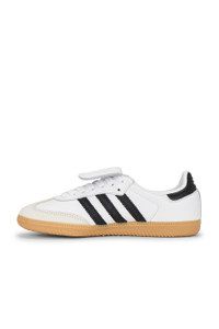 - Leather upper with rubber gum sole - Lace-up front - Signature three stripes at outer panels with foiled SAMBA logo at outer panel - Foldover tongue with tonal embossed adidas logo - Padded low-cut collar - Revolve Style No. AORI-WZ145 - Manufacturer Style No. IG4279