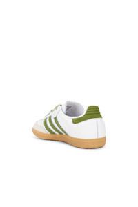 - Leather upper with suede trim and rubber gum sole - Lace-up front - Signature three leather stripes at side panels with embroidered star detailing - Cushioned textile footbed - Printed SAMBA logo at side panel - Printed adidas logo at tongue - Padded low-cut collar - Additional laces included - Revolve Style No. AORI-WZ189 - Manufacturer Style No. JS1352