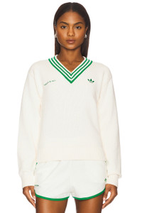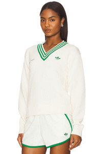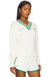 WOMEN'S ADIDAS X SPORTY & RICH V-NECK SWEATER - OFF WHITE/NIGHT NAVY
