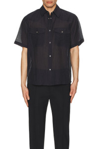 - 58% cotton 41% nylon 1% spandex - Made in China - Hand wash - Front snap button closure - Dual flap pockets with snap button closure at chest - Lightweight seersucker fabric - Garment is made with a semi-sheer fabric, undergarments can show through - Revolve Style No. APRA-MS10 - Manufacturer Style No. 251WSH217