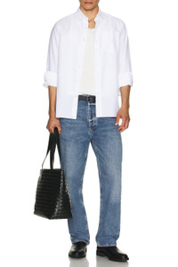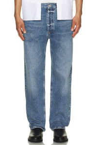 - 100% cotton - Machine wash - Button fly closure.5-pocket styling - Lightly distressed pocket trim - Rigid denim.20" at the knee narrows to 17" at the leg opening - Revolve Style No. AGOF-MJ22 - Manufacturer Style No. A642-1371