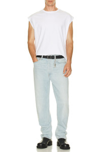 - 100% cotton - Made in USA of imported materials - Machine wash - Button fly closure.5-pocket styling - Midweight rigid denim with intentional distressed trim.20" at the knee narrows to 16" at the leg opening - Revolve Style No. AGOF-MJ23 - Manufacturer Style No. A642B-1810