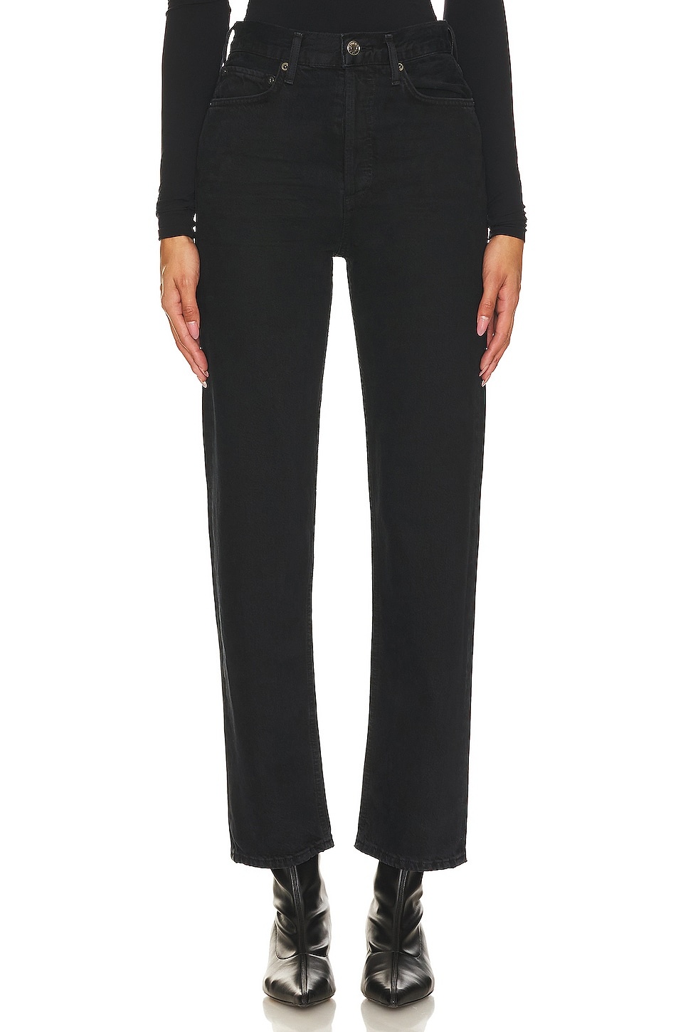 - 100% regenerative cotton - Made in Turkey - Machine wash - Button fly.5-pocket styling - Rigid denim fabric.16" at the knee narrows to 14.5" at the leg opening - Featuring a flattering high-rise waist with a close-fitting top block through the hips, an easy, classic straight leg finish. - Revolve Style No. AGOL-WJ533 - Manufacturer Style No. A154-1604