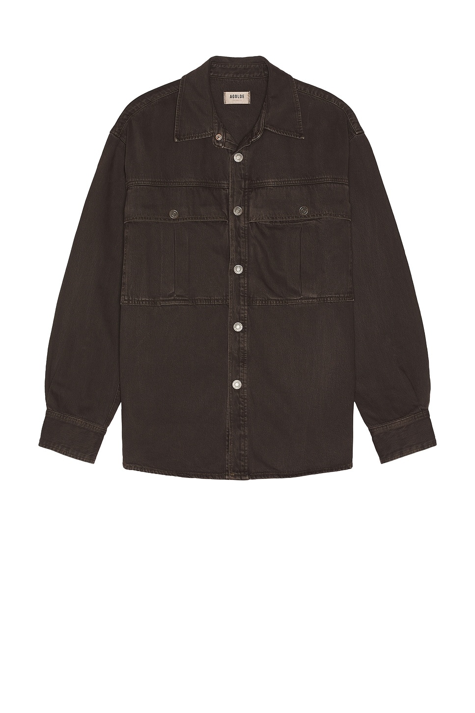 - 100% organic cotton - Made in USA - Machine wash - Front button closure - Chest button pockets - Twill fabric - Revolve Style No. AGOF-MS14 - Manufacturer Style No. A4018B-3020