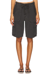 - 55% cotton 45% linen - Machine wash - Zip fly with button and drawstring closure.6-pocket styling - Cargo styling - Twill fabric - Shorts measure approx 21.5" in length - Revolve Style No. AGOL-WF197 - Manufacturer Style No. A9242-1849