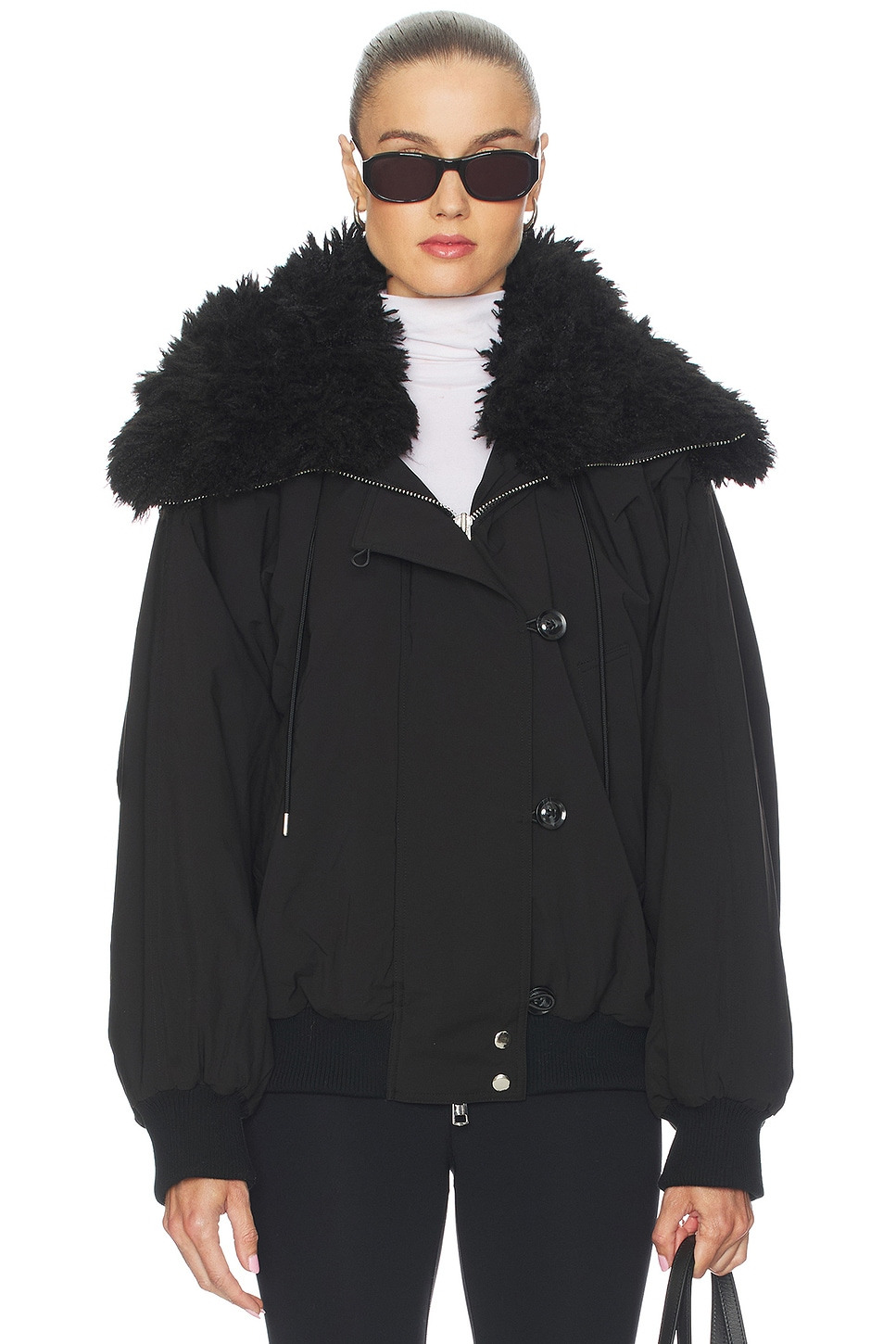 - Self : 100% Polyester Lining: 100% recycled polyester 94% polyester 6% elastane Hood Lining : Faux fur : 100% Polyester - Dry clean only - Side zip pockets - Hidden front zipper closure - Exposed two-way front zipper closure - Ribbed cuffs - Padded ripstop fabric - Revolve Style No. AGOL-WO86 - Manufacturer Style No. A5096