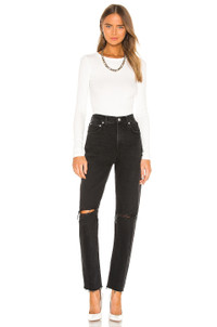 - 100% cotton - Light fading and destroyed detail - Zip fly with button closure.5-pocket design - Frayed hem - Rigid denim fabric - Made in USA.15" at the knee narrows to 14" at the leg opening - Revolve Style No. AGOL-WJ255 - Manufacturer Style No. A084-998