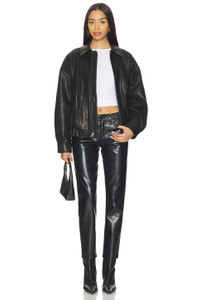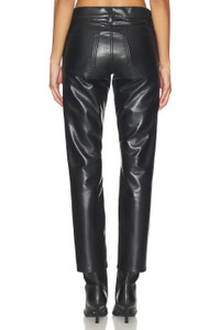 - Self: 50% recycled leather 30% polyurethane 10% viscose 10% polyester Lining: 95% polyester 5% elastane - Dry clean only - Zip fly with button closure.5-pocket design - Midweight leather fabric.13" at the leg opening - Revolve Style No. AGOL-WP82 - Manufacturer Style No. A301-1285