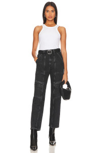 - 100% cotton - Made in Turkey - Machine wash - Zip fly with button closure - Cargo style pockets - Structured denim fabric.14" at the knee narrows to 12" at the leg opening - The Cooper is our updated take on a relaxed straight leg - Designed with a high-rise waist, intricate seaming details, and utilitarian inset pockets. - Revolve Style No. AGOL-WJ495 - Manufacturer Style No. A9120-1346