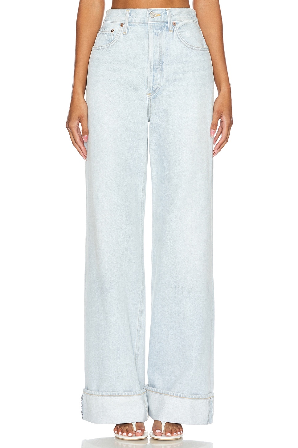 - 100% regenrative cotton - Made in USA - Machine wash - Button fly.5-pocket deisgn - Cuffed hem - Light distessing at pockets.22" at the knee breaks to 23" at the leg opening - Revolve Style No. AGOL-WJ594 - Manufacturer Style No. A9159B-1206
