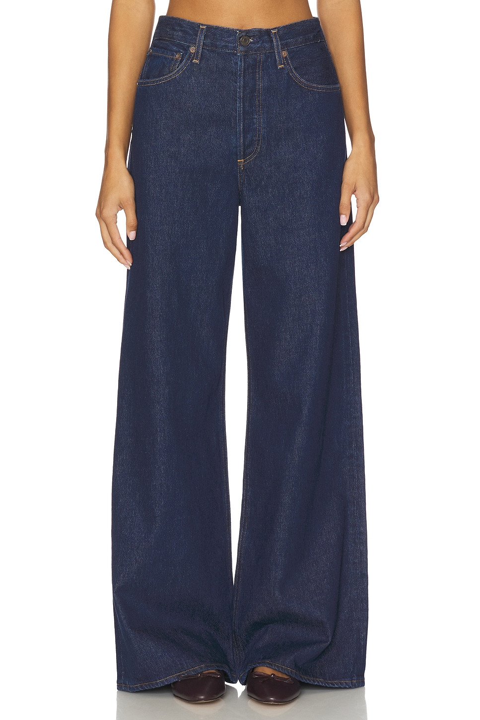 - 67% regenerative cotton 22% lyocell 11% post consumer recycled cotton - Machine wash - Button fly closure.5-pocket styling - Wide leg design - Rigid denim fabric.24" at the leg opening - Revolve Style No. AGOL-WJ745 - Manufacturer Style No. A198-1535