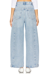 - 100% regenerative cotton - Made in Turkey - Machine wash cold - Zip fly with button closure - Side slant pockets with darting detail - Rigid denim fabric - Adjustable hem with snap button closures.23" at the knee narrows to 22" at the leg opening Because leg opening is adjustable, width may vary - Revolve Style No. AGOL-WJ680 - Manufacturer Style No. A231-1141