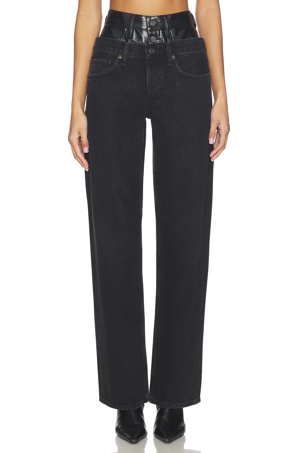 - Self: 100% cotton Leather: 50% recycled leather 30% polyurethane 10% viscose 10% polyester Lining: 95% polyester 5% elastane - Made in Turkey - Dry clean only - Button fly closure - Double waistband styling.20" at leg opening - Revolve Style No. AGOL-WJ765 - Manufacturer Style No. A298-1817