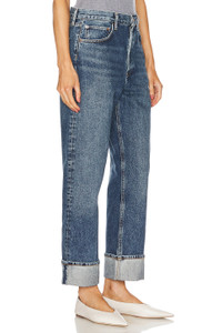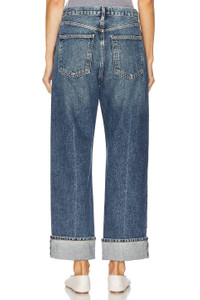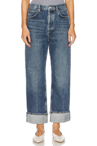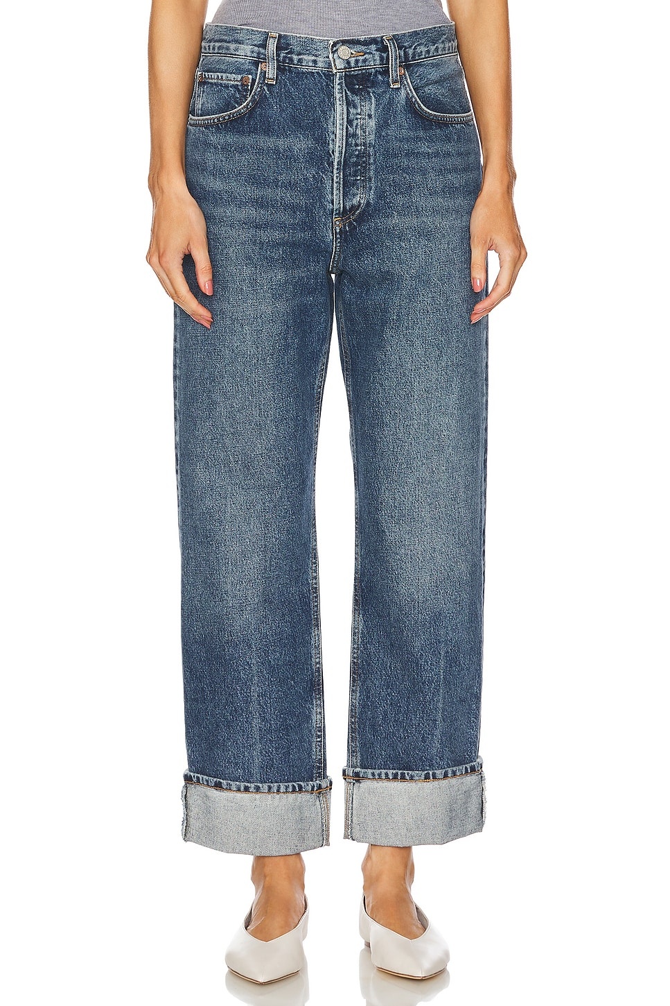 - 100% regenerative cotton - Made in Turkey - Machine wash - Button fly.5-pocket design - Heavy whiskering and fading detail - Folded cuffs.19" at the knee narrows to 14" at the leg opening - Revolve Style No. AGOL-WJ616 - Manufacturer Style No. A9157E-1206