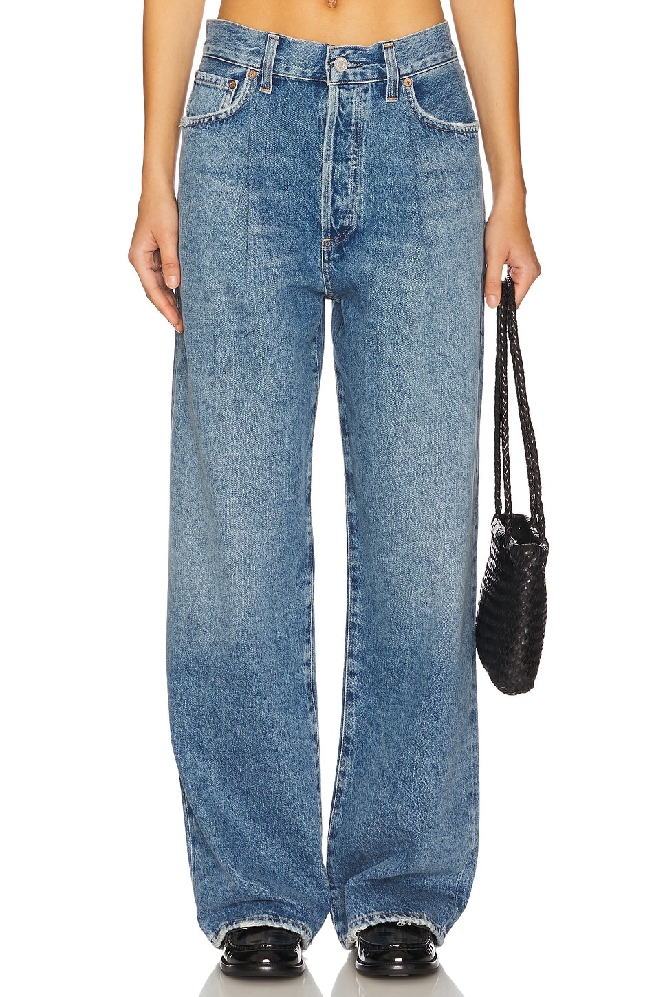 - 100% regenerative cotton - Made in Turkey of imported material - Machine wash - Button fly closure.5-pocket design - Rigid denim fabric with front pleated detail.22" at the knee and narrows to 19" at the leg opening - Revolve Style No. AGOL-WJ703 - Manufacturer Style No. A239-1765