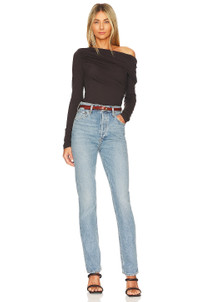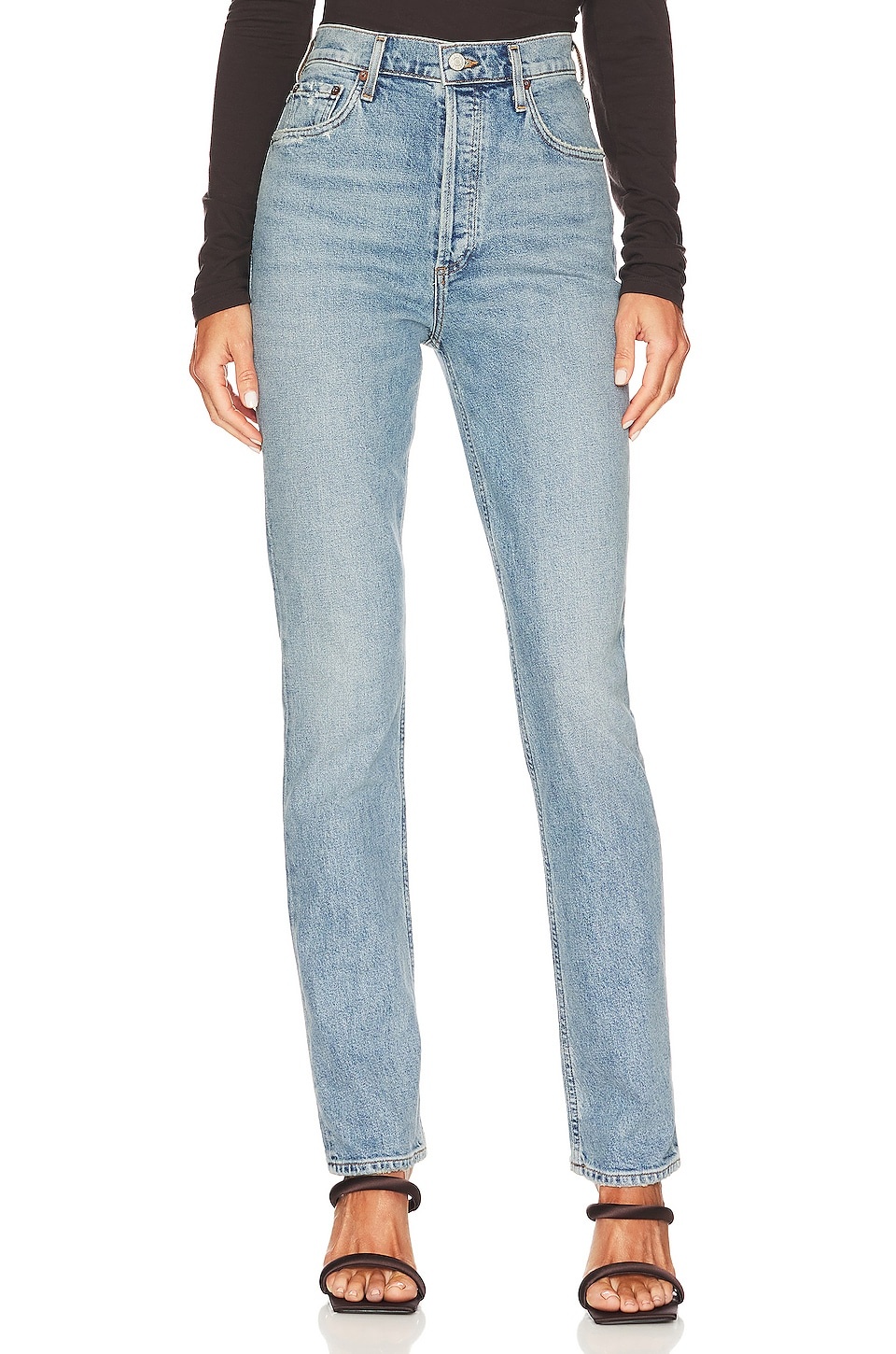 - 99% organic cotton 1% elastane - Made in USA - Machine wash - Button fly.5-pocket styling - Light whiskering detail.14" at the knee narrows to 12.5" at the leg opening - Revolve Style No. AGOL-WJ434 - Manufacturer Style No. A9074B-1456
