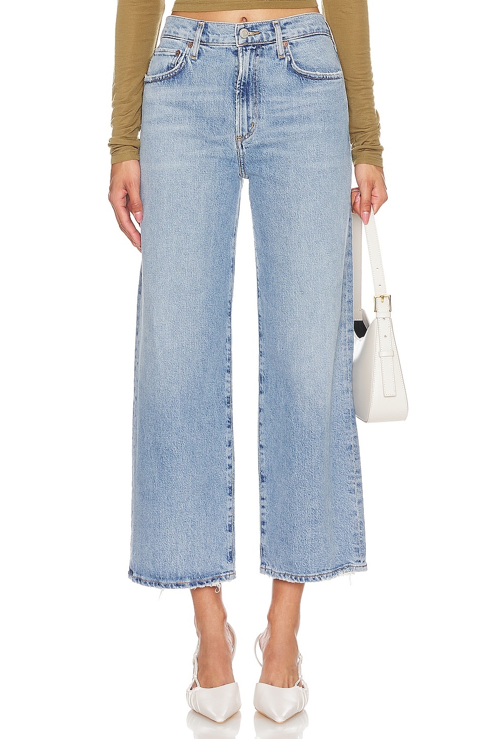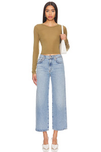 - 88% cotton 11% postconsumer recycle cotton 1% elastane - Made in Turkey - Machine wash - Zip fly with button closure.5-pocket design - Light whiskering and fading detail - Frayed hem.17" at the knee and 17" at the leg opening - Revolve Style No. AGOL-WJ574 - Manufacturer Style No. A9190B-1554