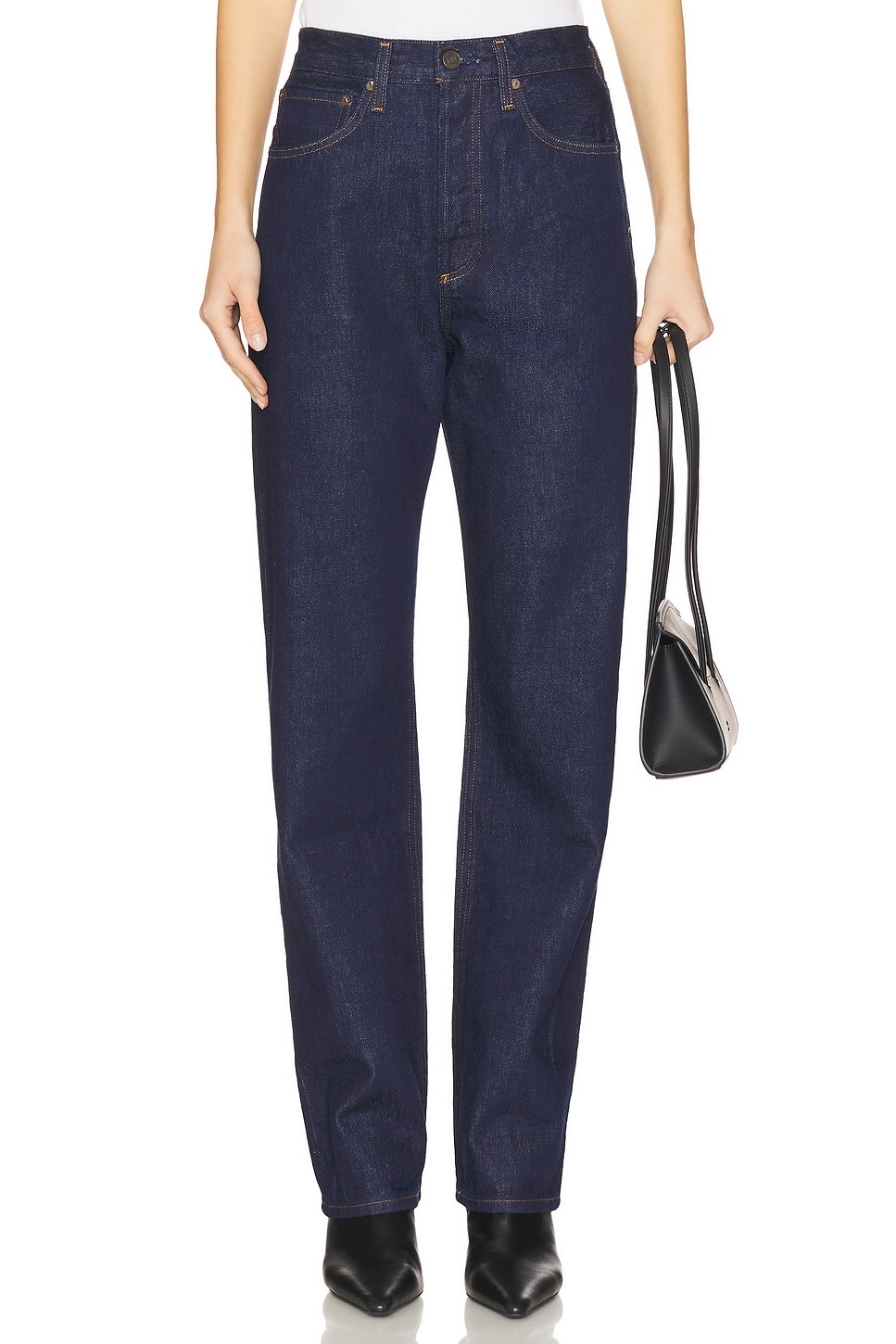 - 100% regenerative cotton - Made in Turkey - Machine wash - Button fly closure.5-pocket styling - High-waisted fit - Rigid denim fabric.17" at the knee breaks to 16" at the leg opening - Revolve Style No. AGOL-WJ658 - Manufacturer Style No. A199-1810