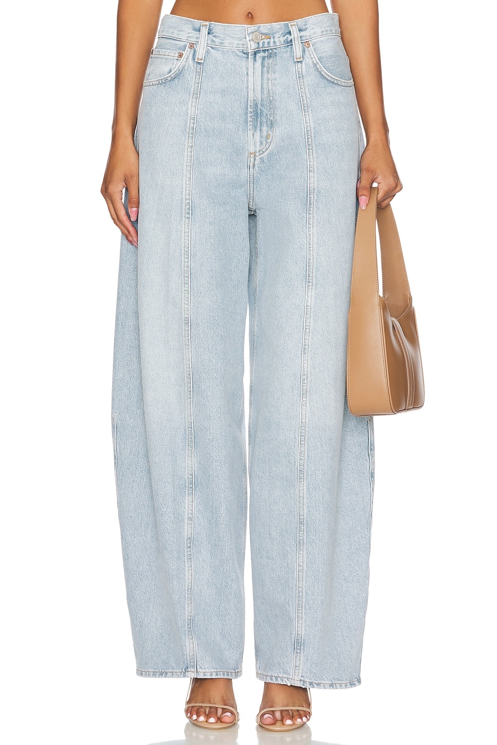 - 100% regenrative cotton - Made in Turkey - Machine wash - Zip fly with button closure.5-pocket deisgn - Light distressing throughout.28" at the knee narrows to 20" at the leg opening - Revolve Style No. AGOL-WJ596 - Manufacturer Style No. A9221-1601