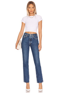 - 100% organic cotton - Made in Turkey - Machine wash - Button fly.5-pocket styling - Light whiskering detail - Rigid denim fabric.18" at the knee narrows to 14" at the leg opening - The Lana sits at your waist with a slightly relaxed, full-length inseam - This fit is crafted with a worn-in feel that makes this your everyday jean. - Revolve Style No. AGOL-WJ432 - Manufacturer Style No. A140-1371